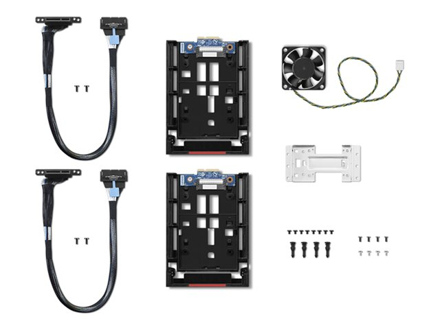 Lenovos harddiskoppgraderingssett er utviklet for å forbedre lagringsmulighetene på kompatible enheter. Settet inneholder viktige komponenter for en problemfri installasjons- og oppgraderingsprosess, noe som sikrer effektiv ytelse. Settet inneholder skruer, vifte, viftegjennomføringer, skuffsett, brakett og kabler, noe som gjør det allsidig og brukervennlig, slik at brukerne kan maksimere systemets potensial uten problemer.