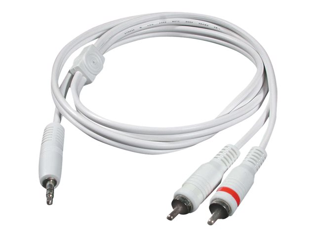 This stereo to RCA stereo audio cable from C2G is specifically designed to connect a PC sound card, portable CD player, MP3 player, iPod or any mini-stereo audio device with 3.5mm jacks to other audio devices with RCA audio jacks. This cable features two 26-gauge oxygen-free copper conductors, a drain wire, and an aluminum foil shield to reject noise.