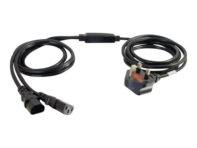Strømsplitter - BS 1363 (hann) til power IEC 60320 C13 - AC 250 V - 3 m - formstøpt - svart - Storbritannia