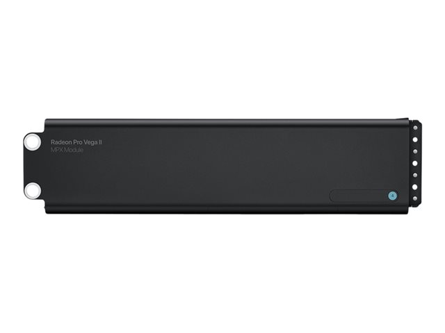 Hver MPX-modul har fire Thunderbolt 3-porter og en HDMI 2.0-port, og Mac Pro kan støtte opptil to slike moduler. Når to Vega II MPX-moduler er installert, kan du koble dem sammen med den medfølgende Infinity Fabric Link-tilkoblingen, som gjør at støttede applikasjoner kan overføre data direkte mellom Vega II-grafikkortene opptil fem ganger raskere enn PCI Express.