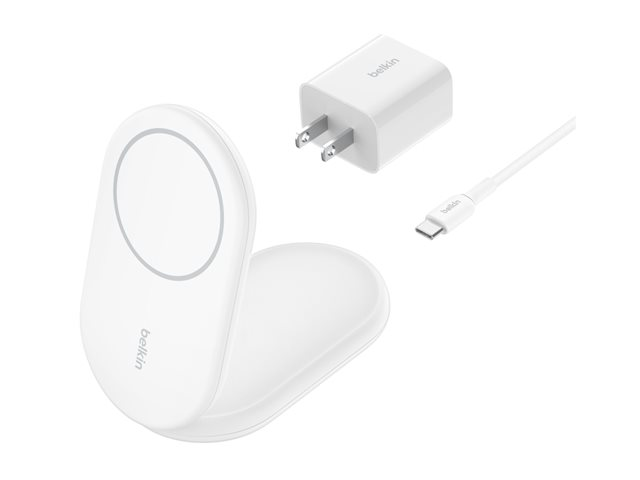 magnetisk, sammenleggbar, med Qi2 + AC-strømadapter - 15 watt - 3 A - Fast Charge, Power Delivery 3.1 - hvit