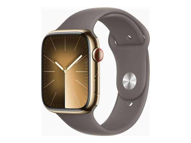 45 mm - gyllen rustfritt stål - smartklokke med sportsbånd - fluorelastomer - leire - båndbredde: S/M - 64 GB - Wi-Fi, Bluetooth, UWB, LTE - 4G - 51.5 g