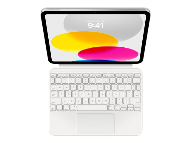Magic Keyboard Folio er en flott følgesvenn til iPad (10. generasjon). Det har en fantastisk skriveopplevelse, en innebygd styreflate for presis håndtering av oppgaver og en funksjonsrad med 14 taster. Den allsidige designen i to deler omfatter et avtakbart tastatur og et beskyttende bakpanel som begge festes magnetisk til iPad. Et justerbart stativ gir jevn, kontinuerlig visning. Og Magic Keyboard Folio sørger for at iPad-enheten er beskyttet uansett hvor du er.