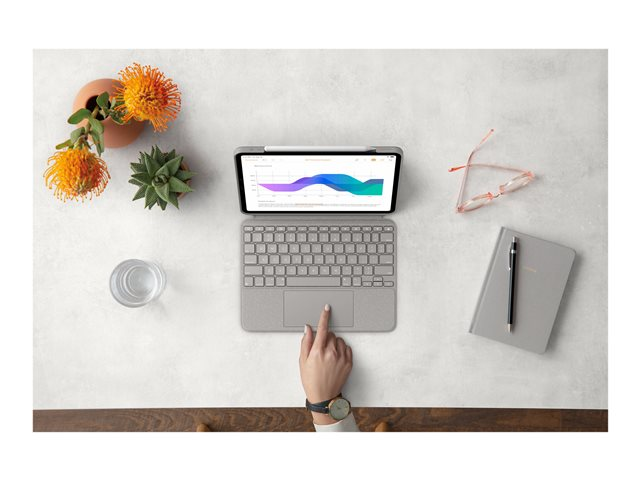 Logitech Combo Touch er designet for sømløs integrasjon med Apple iOS-enheter, og tilbyr et tastatur og et folioetui i en allsidig pakke. Med tilgang til porter og kontroller gir dette etuiet brukerne mulighet til å holde seg tilkoblet og ha kontroll mens de er på farten, noe som gjør det ideelt for produktivitet og kreativitet. Den integrerte Apple-blyantholderen sørger for at du alltid har verktøyene for hånden, noe som gir en bedre brukeropplevelse. Combo Touch har en innebygd styreflate som forbedrer navigasjonen og effektiviteten, og gir en intuitiv måte å samhandle med apper og dokumenter på.