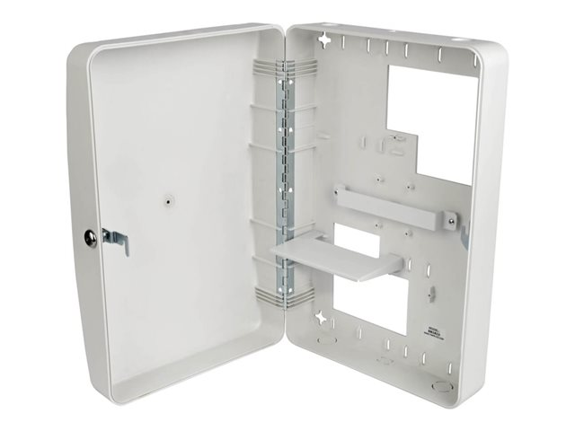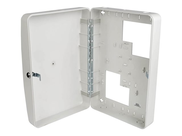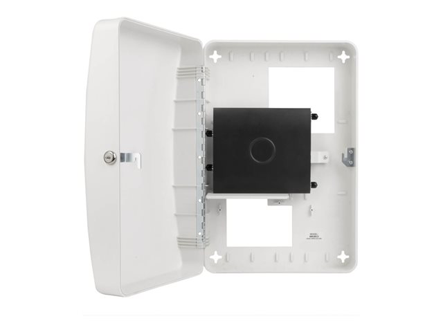 This Wi-Fi access point enclosure swings away from the wall or ceiling on a sturdy hinge, allowing easy access to equipment and cabling during installation and maintenance. It locks securely with the included keys to protect its contents against theft, tampering, dust and other contaminants. Vents on each end allow cool air to flow freely through the enclosure to prevent equipment from overheating.