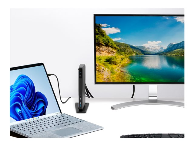 If you have a USB-C enabled Surface device and need to work on multiple screens, the SD4845P is the ideal docking station. A single USB-C cable provides a Plug-and-Play connection for up to three 1080p monitors, with no need for driver installation, dongles or adapters. The same cable keeps your laptop charged with 85 W Power Delivery and allows you to connect your mouse, keyboard and other USB accessories. All supported by ultra-fast 10 Gbps data transfer speeds, so your productivity is never compromised.