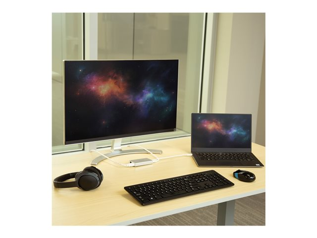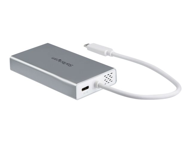 The versatile USB-C adapter lets you create a dual-monitor workstation virtually anywhere, providing 4K Ultra HD (3840 x 2160p) HDMI output with 30 Hz refresh rate and audio, two USB 3.0 ports, and a Gigabit Ethernet port, with support for USB Power Delivery 2.0.
