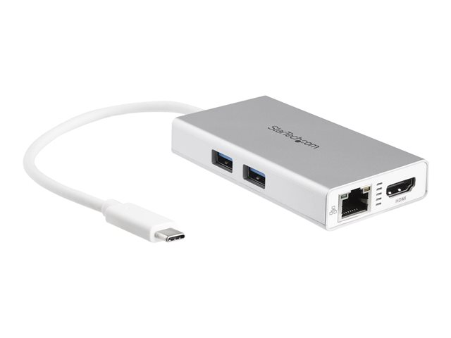 StarTech.com USB-C Multiport Adapter, USB-C Travel Docking Station with 4K HDMI, 60W Power Delivery Pass-Through, GbE, 2pt USB-A 3.0 Hub, Portable Mini USB Type-C Dock for Laptop, White