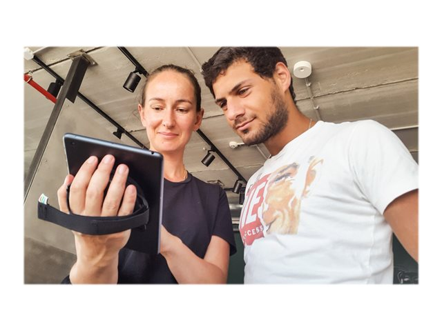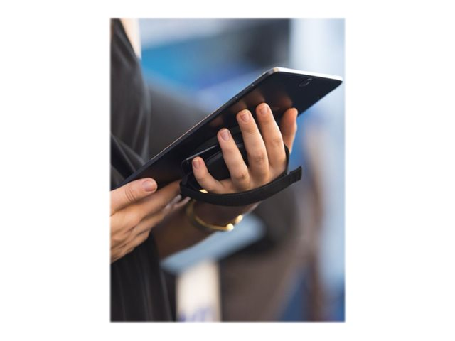Secure your mobile workforce with this universal tablet hand grip that allows you to "grab and go." Our ergonomically designed hand grip connects to the tablet with industrial strength adhesive and has an adjustable strap for a comfortable fit. The tablet hand grip is designed with a 360 degree screen rotation, between portrait and landscape orientation modes, for full user interaction.