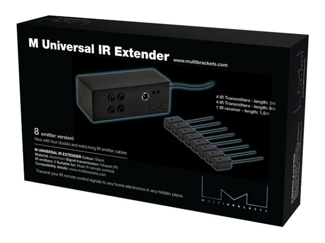 M Universal IR Extender is perfect for home cinema systems, presentation rooms and any other environment where audio-video equipment is out of sight or needs to be hidden. The IR extender works with almost any audio-video system and the signal is not disturbed by an e.g. installed plasma screen nearby.