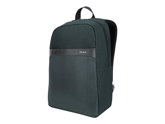 Get on-the-go professional style with the 15.6" GeoLite Essentials Backpack. Featuring a lightweight, slim look, it's ideal for professionals who want essential protection and organization in a sleek silhouette. The padded back panel and adjustable shoulder straps add personal comfort. The Targus quality foam compartment protects your laptop from everyday bumps. The zippered front pocket offers easy access to accessories. Durable, dobby polyester in modern slate gray with a subtle geometric texture delivers minimalist good looks. Water-repellent fabric helps keep it looking good for the long haul.