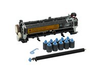 Maintain print quality and prevent paper jams with original HP replacement parts. Maintenance kits include a fuser assembly, transfer roller, tray pick up rollers, and gloves.