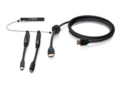 C2G 10ft (3m) 4K HDMI Premium Cable and Dongle Adapter Ring with Color Coded Mini DisplayPort and USB-C - Videoadaptersett - svart - 4K 60Hz støtte, 4K30Hz-støtte (mDP), gullglimtkontakter