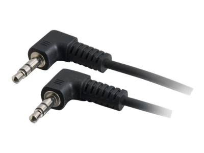 The C2G "Value Series" stereo right angle audio cable is specifically designed to provide a brilliant audio experience. It connects a PC sound card, portable CD player or any mini-stereo audio device to a multimedia speaker. This cable features two copper conductors and a drain wire. The conductors and drain wire are wrapped with an aluminum Mylar shield which prevents unwanted EMI/RFI interference. Fully molded nickel-plated connectors provide excellent strain relief for durable use.