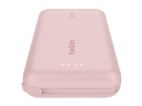 The Belkin BoostCharge power bank combines practicality and eco-friendliness, designed to keep mobile devices charged on the go. With a 10,000 mAh capacity, it effectively powers both tablets and cellular phones, featuring an integrated USB-C cable for added convenience. The product is made from 72% recycled post-consumer plastic, contributing to sustainability while providing reliable performance.