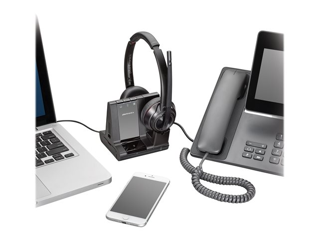 Today's enterprise and contact center professionals work across a range of devices - from PC to mobile to desk phone. The Savi 8200 Series headset system makes call management effortless with three-way connectivity that lets you switch seamlessly between all of them.