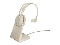 Jabra Evolve2 65 UC Mono - Hodesett - on-ear - konvertibel - Bluetooth - trådløs - USB-C - lydisolerende - beige - med ladestativ