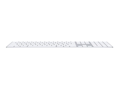Magic Keyboard med numerisk tastatur har en utvidet layout med dokumentnavigasjonskontroller for rask rulling og piltaster i full størrelse for spilling. En saksemekanisme under hver tast gir økt stabilitet, mens optimalisert tastevandring og lav profil gir en komfortabel og presis skriveopplevelse. Det numeriske tastaturet egner seg også ypperlig til regneark og økonomiprogrammer. Og det innebygde, oppladbare batteriet har en utrolig lang levetid, slik at du kan bruke tastaturet i omtrent en måned eller mer mellom hver lading.