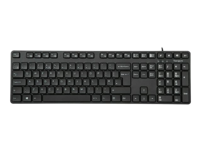 Discover the Targus keyboard, a reliable and user-friendly input device designed to enhance your computing experience. With its wired connectivity and USB interface, this keyboard offers a stable and fast connection to your PC. The 1.5 m cable length ensures that you can position the keyboard comfortably, regardless of your desk setup. It features a full 108-key QWERTY layout, including a numeric keypad, making it suitable for a wide range of typing tasks. Beyond functionality, the keyboard is built with DefenseGuard Antimicrobial Protection, providing a cleaner surface and contributing to your overall well-being. Its compliance with Plug-and-Play standards means setting up your new keyboard is a breeze, allowing you to get started right away without the need for additional software installations.