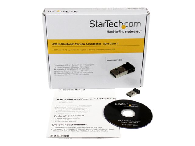 StarTech.com Bluetooth Adapter - Mini Bluetooth 4.0 USB Adapter - 50m/165ft Wireless Bluetooth Dongle - Smart Ready LE+EDR (USBBT1EDR4) - Nettverksadapter - USB - Bluetooth 4.0 - Klasse 1 - svart USBBT1EDR4