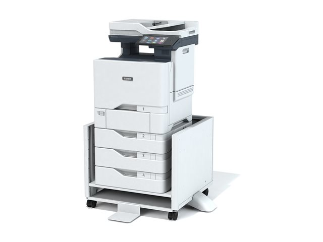 Dette skriverstativet for VersaLink B625, Xerox B410, C410 har hjul og føtter som kan trekkes ut for støtte og gir oppbevaringsplass for tonerkassetter, papir og annet forbruksmateriell.